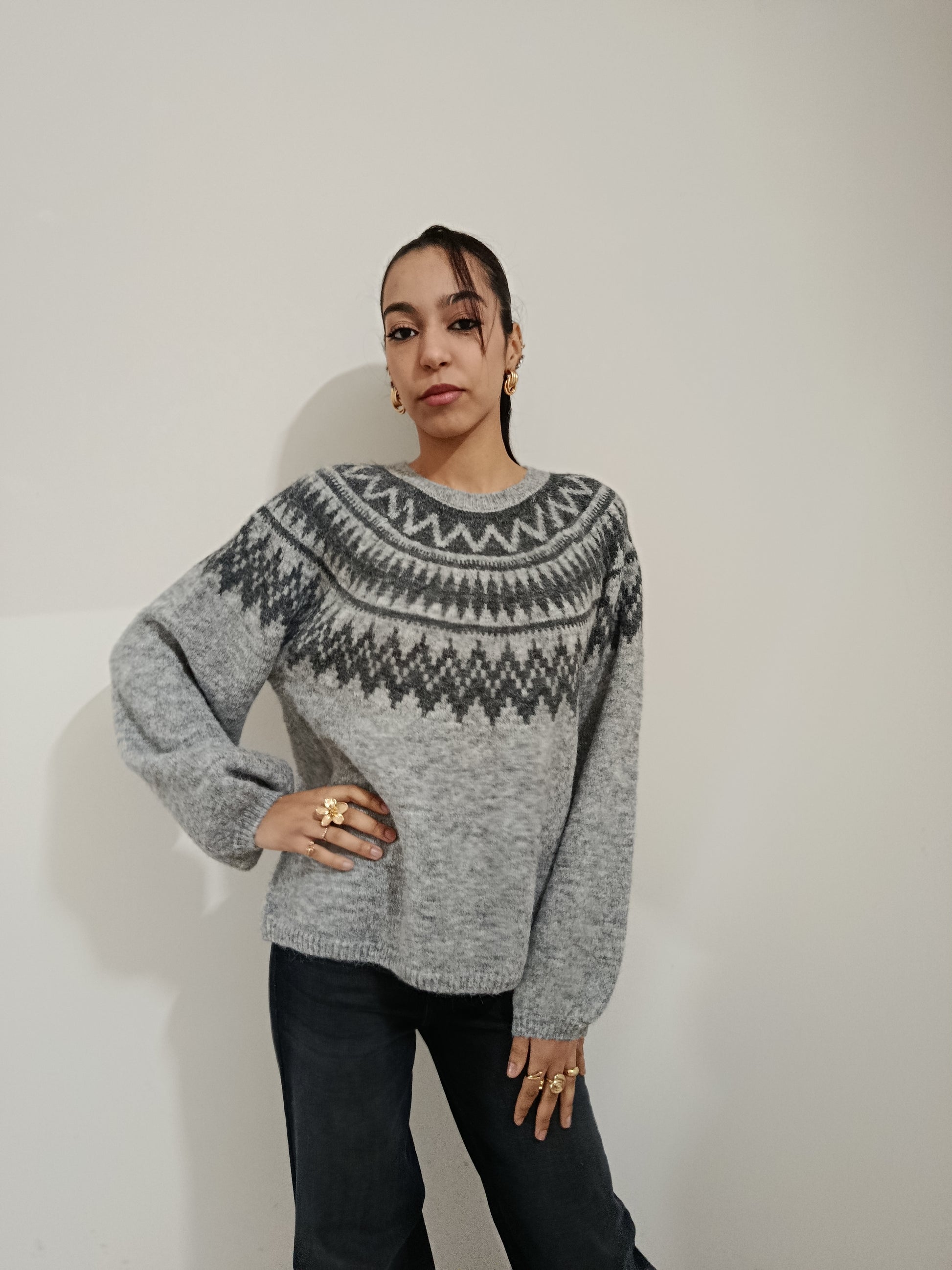 Pullover norvegese fuzzy, maniche lunghe e a ampie su fondo